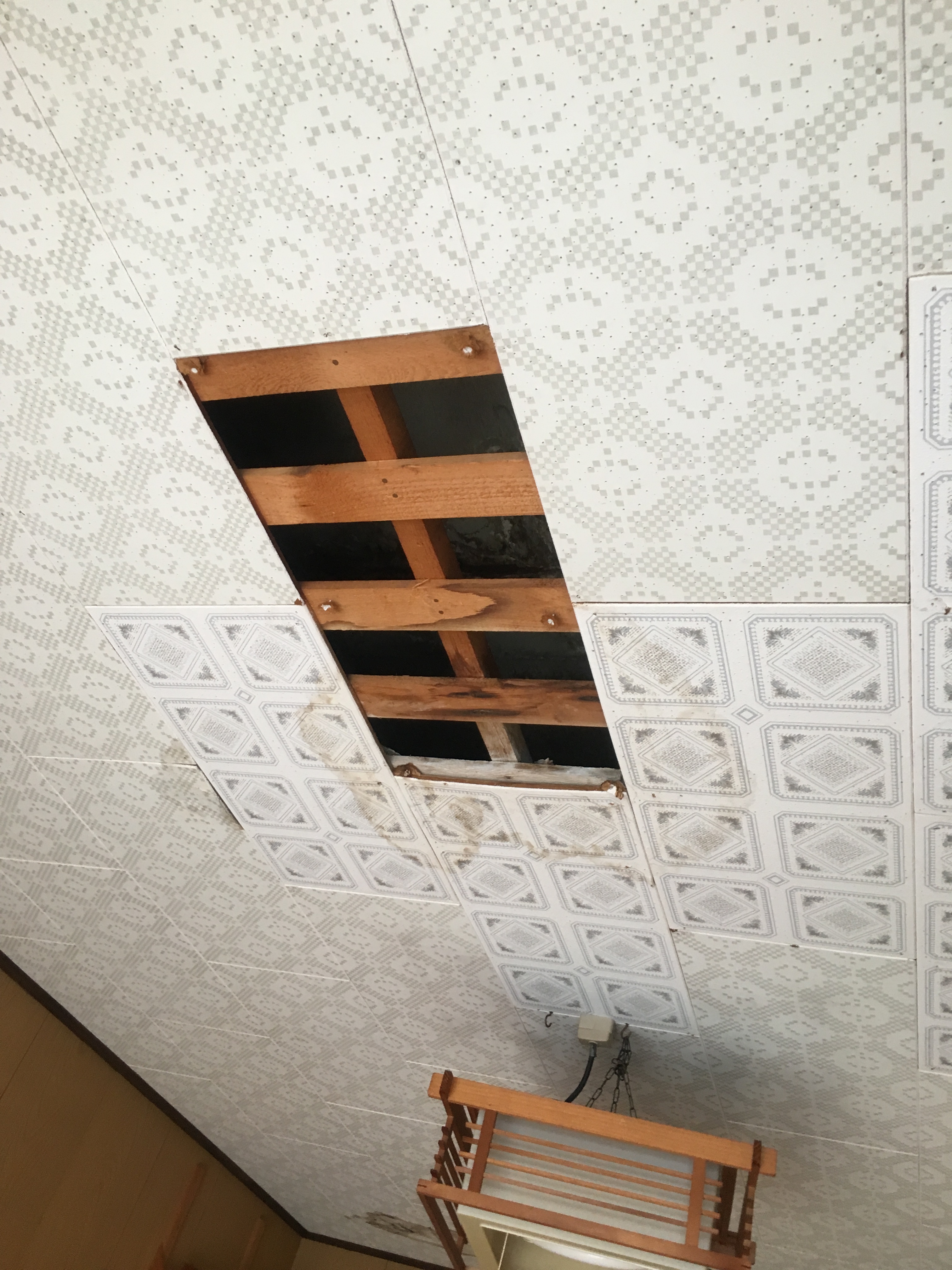 写真のように家の中に水が浸入し、雨漏りが発生してしまいます。