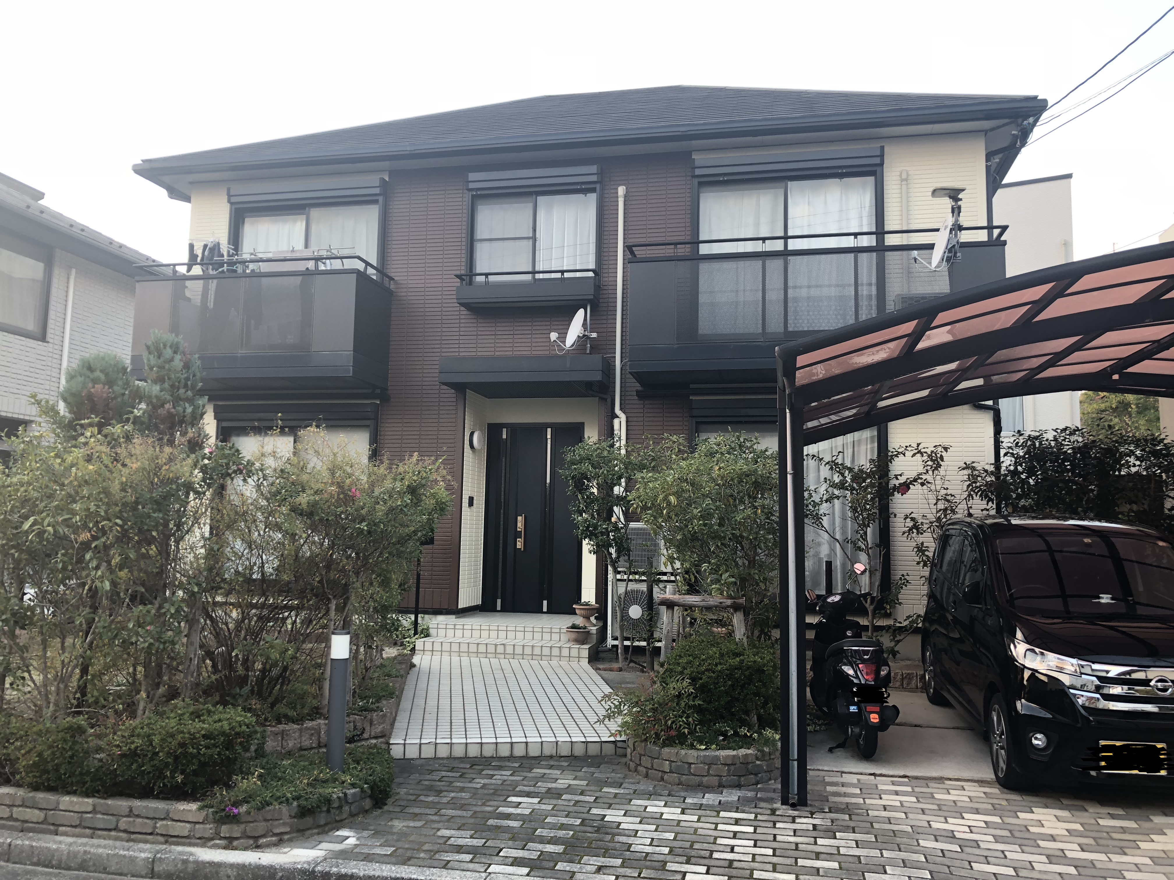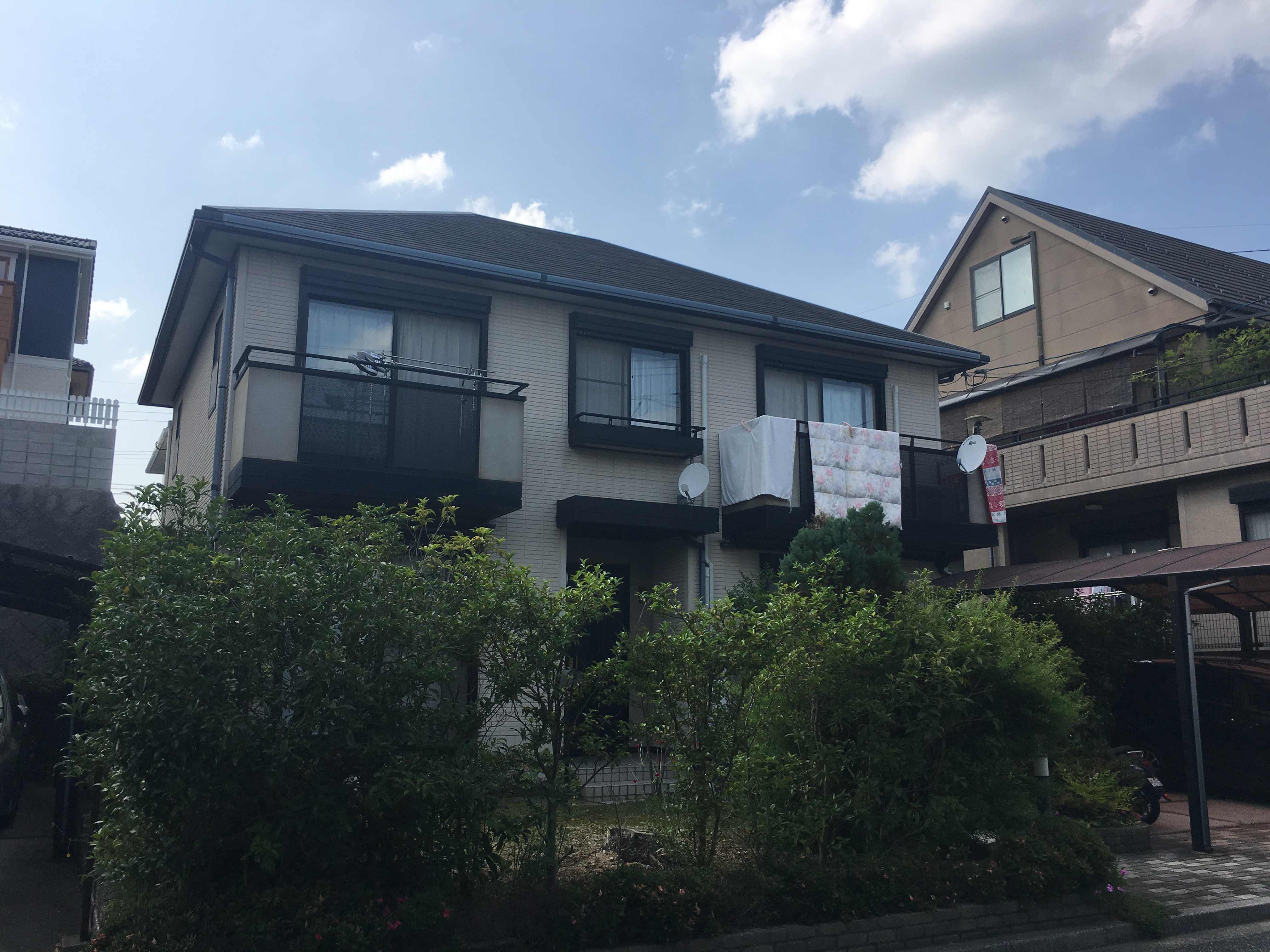 先日、安佐南区の毘沙門台のお客様の家で外壁塗装の工事が完了しましたので、