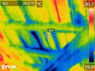 雨漏り部分を赤外線サーモグラフィカメラで確認した所、