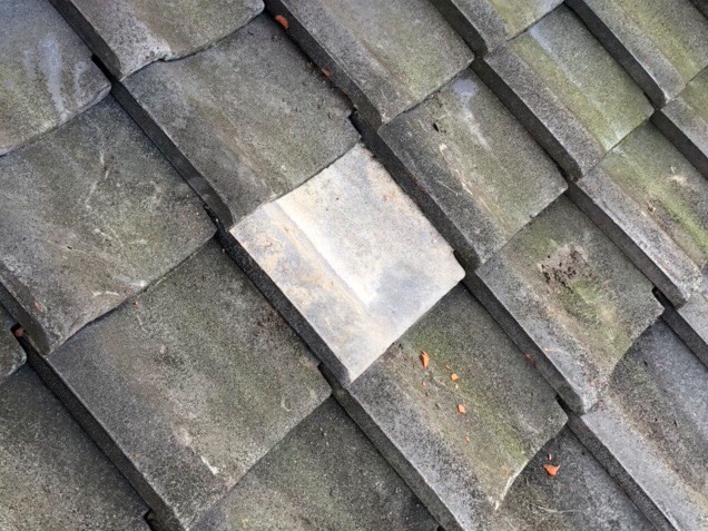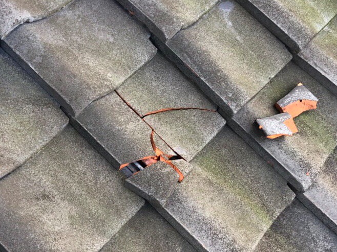 その部分の屋根を目視にて確認した所、屋根に割れが確認されました。