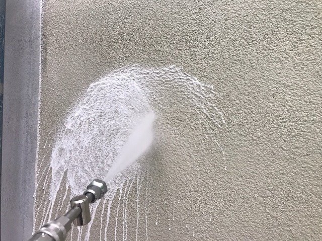 外壁を洗浄で綺麗にしていきます。