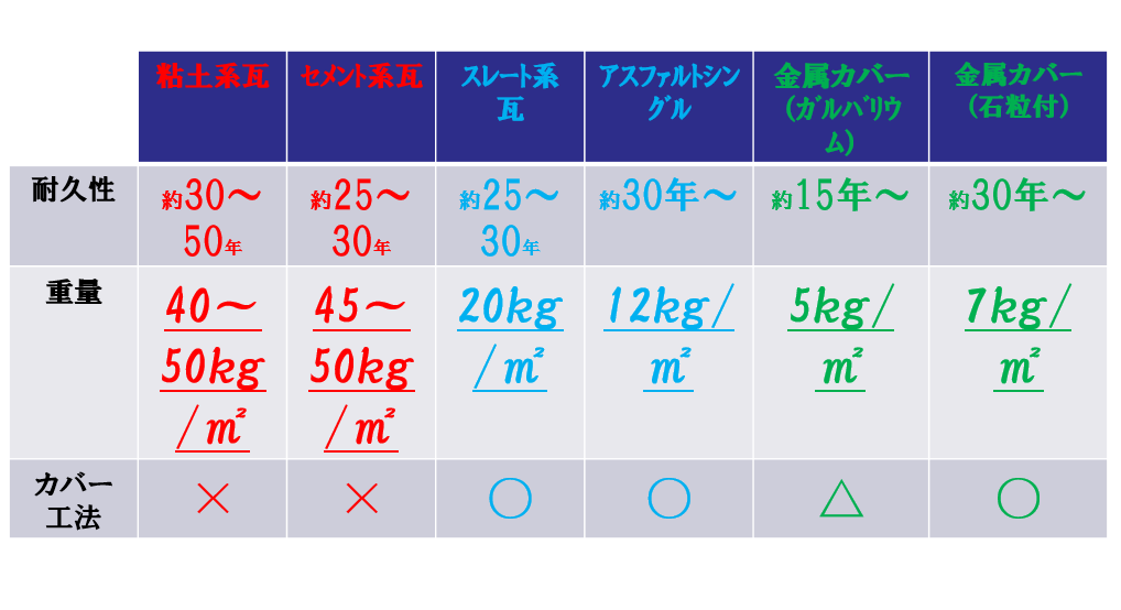 ですが、赤文字の粘土系(日本瓦)やセメント系の瓦は