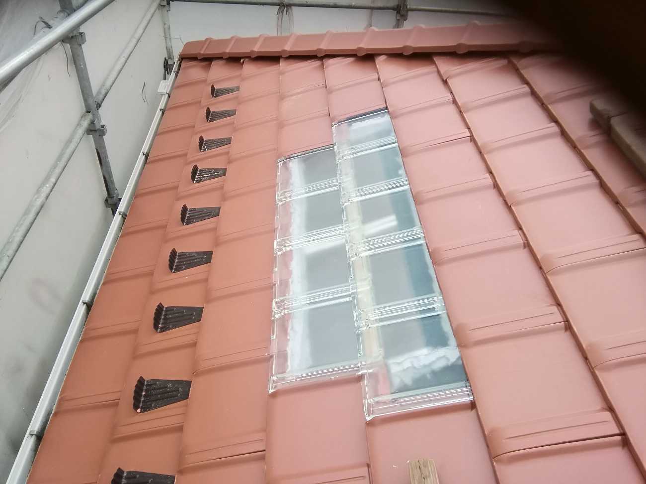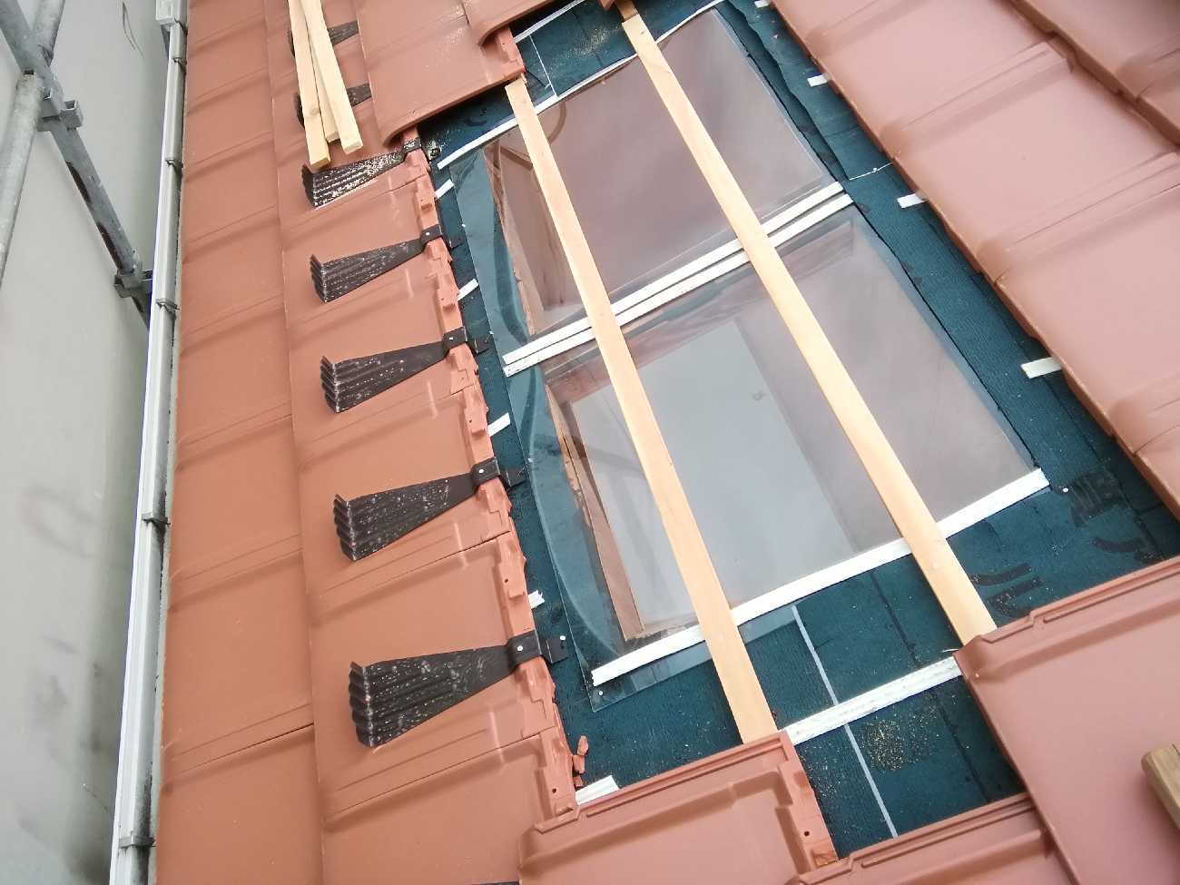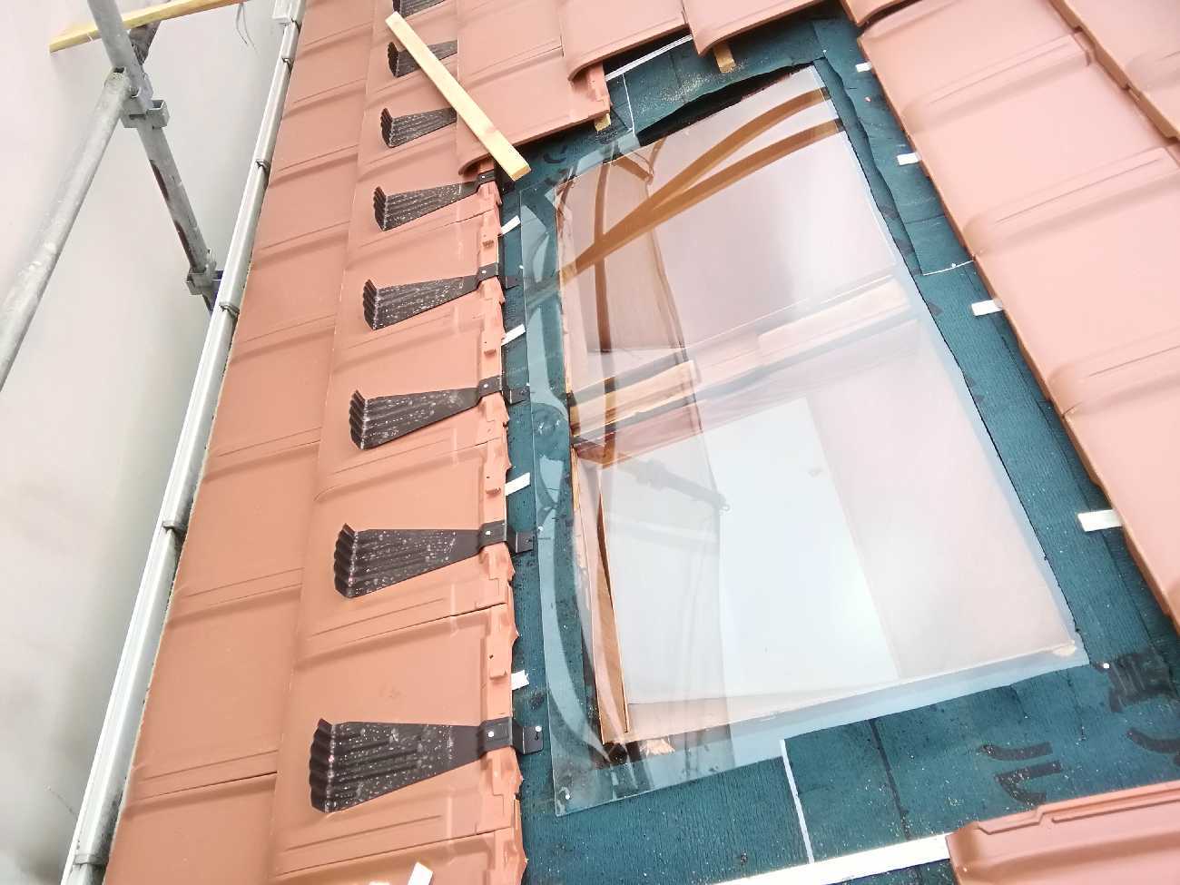 また、今回天窓を取りその箇所にガラス瓦をのせていきました。