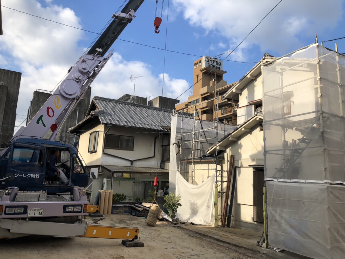 今回はレッカーを使用し瓦をどんどん降ろしていきます。