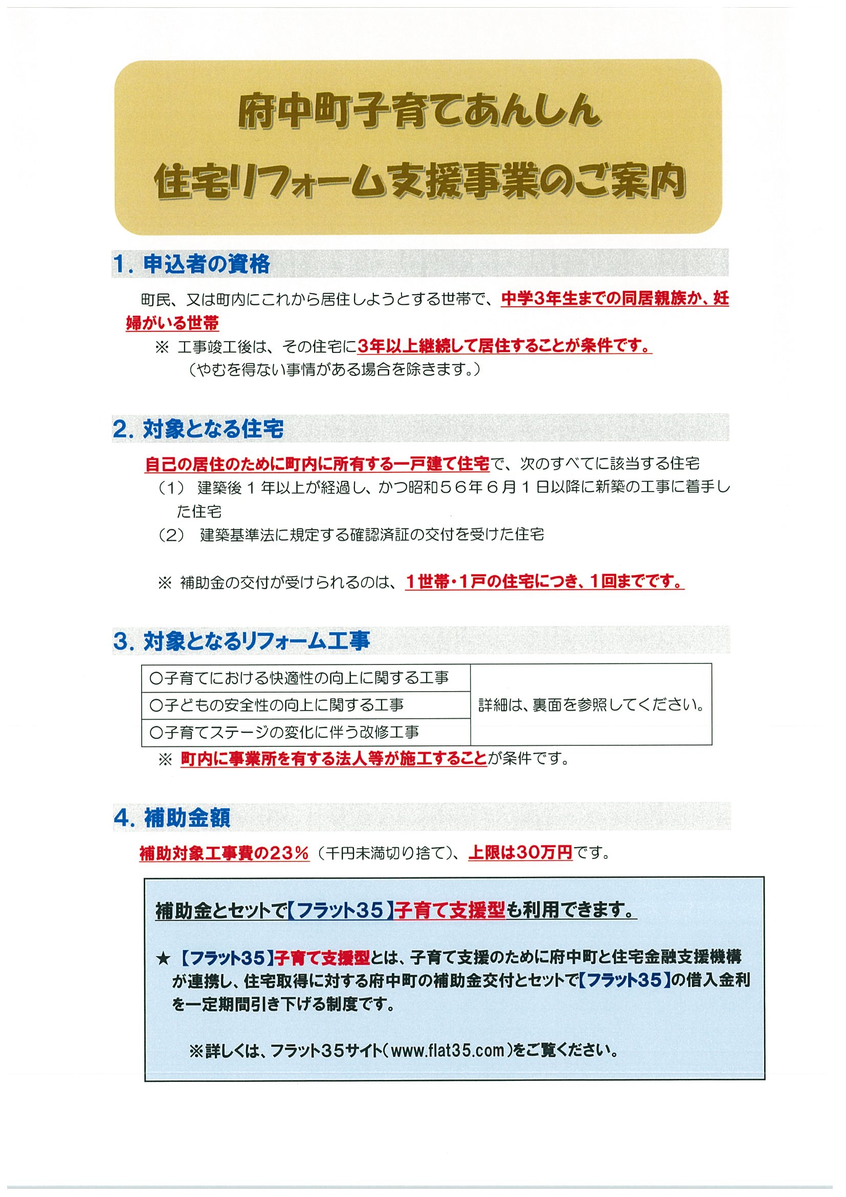 【再掲】安芸郡府中町「子育てあんしん 住宅リフォーム支援事業」